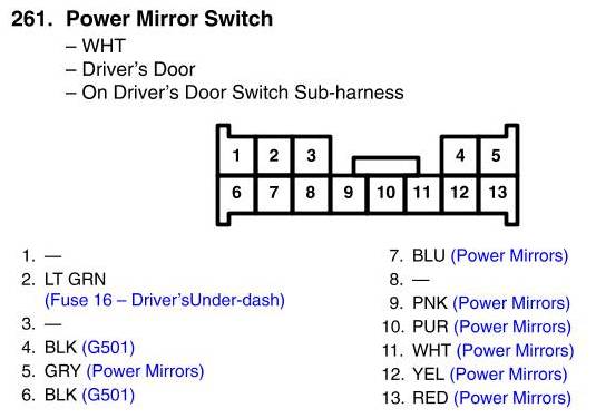 View 261 - Power Mirror Switch Connector View