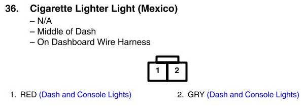 View 36 - Cigarette Lighter Light Connector View (Mexico)