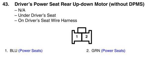 Driver's Power Seat Rear Up-Down Motor Connector View (Without DPMS)