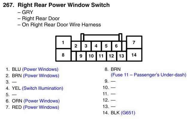 Right Rear Power Window Switch Connector View