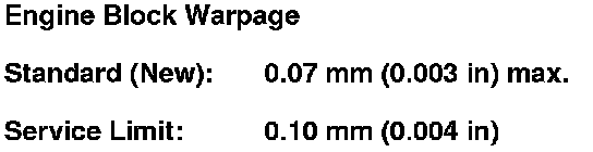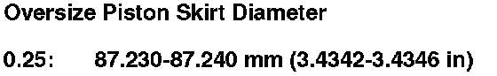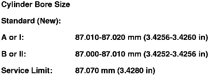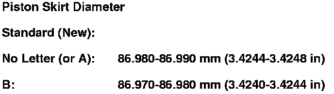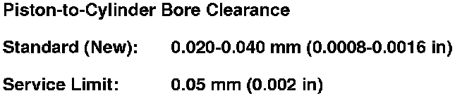 7. Calculate the difference between the cylinder bore diameter and the piston diameter. If the clearance is near or exceeds the service limit, inspect the piston and the cylinder bore for excessive wear.