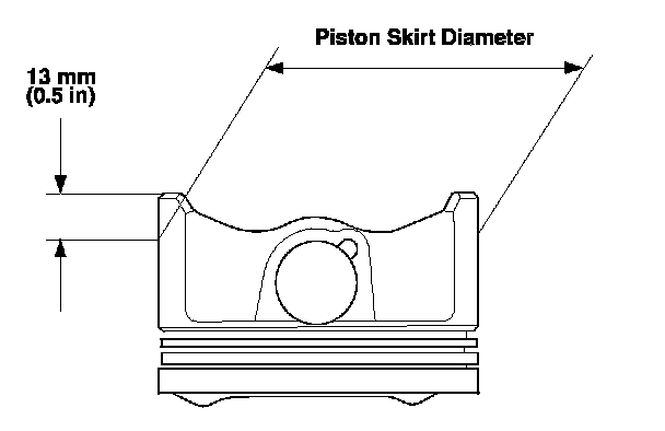 3. Measure the piston diameter at a point 13 mm (0.5 in) from the bottom of the skirt. There are two standard-size pistons (No Letter or A, and B). The letter is stamped on the top of the piston. Letters are also stamped on the engine block as the cylinder bore sizes.