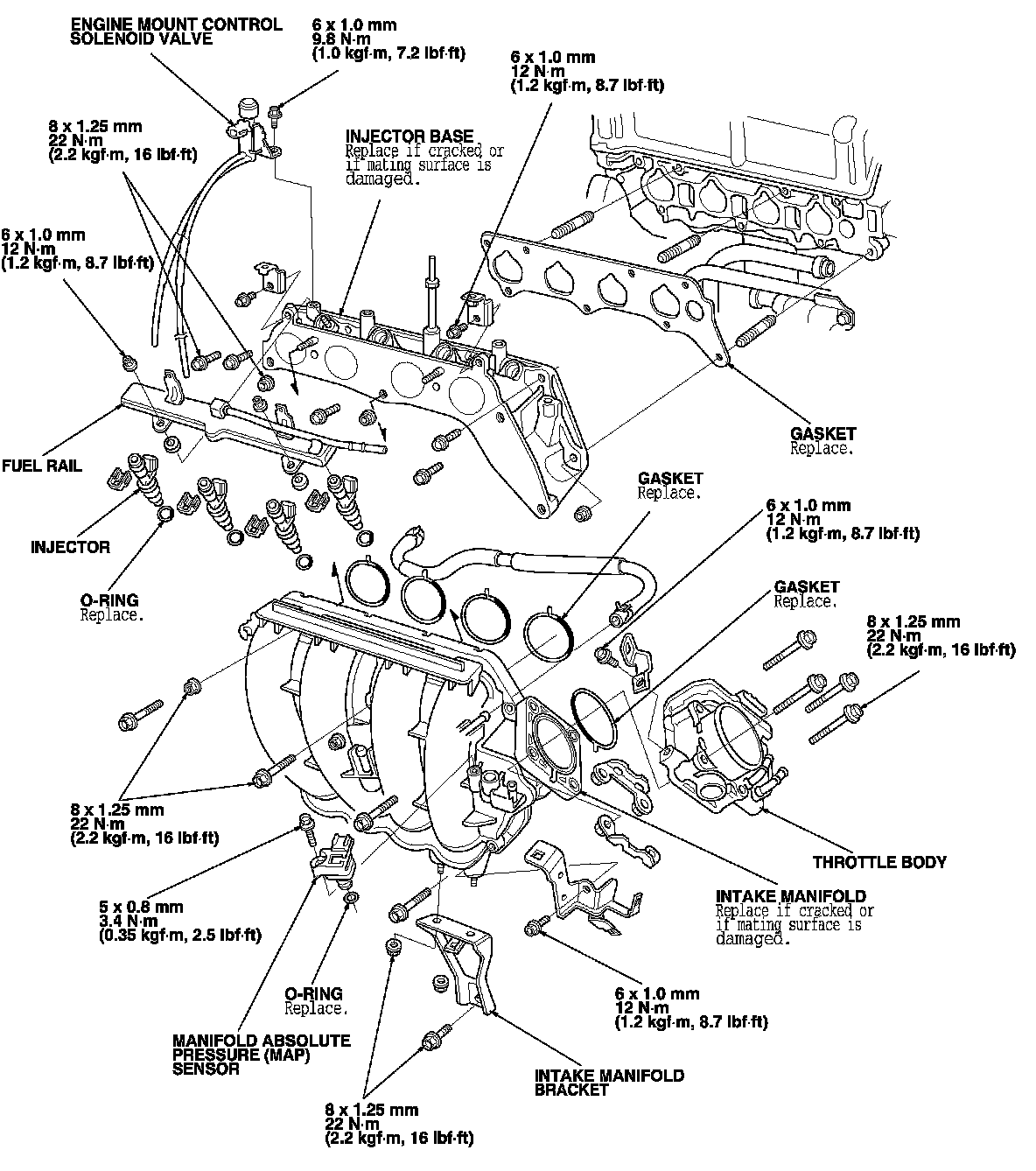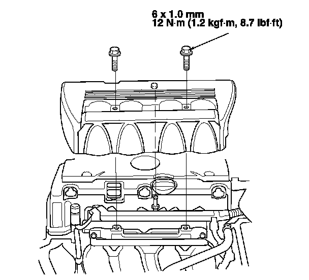 9. Remove the intake manifold mounting bolts/nuts, then remove the intake manifold from the cylinder head.
