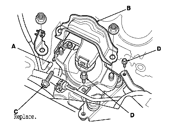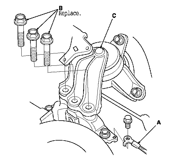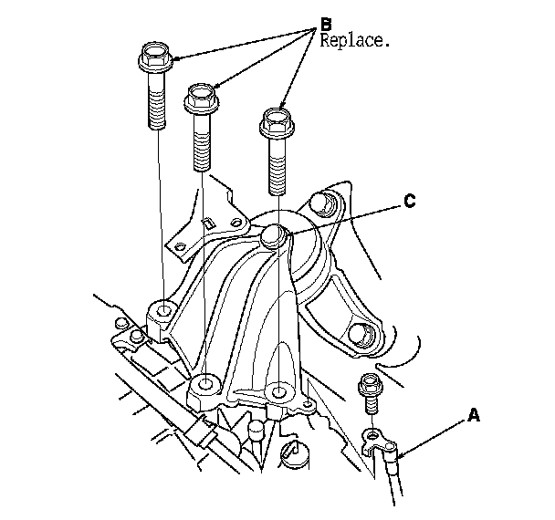 NOTE: Do not remove the TORX bolt (C) from the upper transmission mount. If the TORX bolt is removed, the upper transmission mount must be replaced as an assembly.