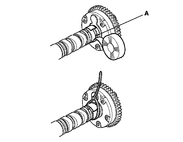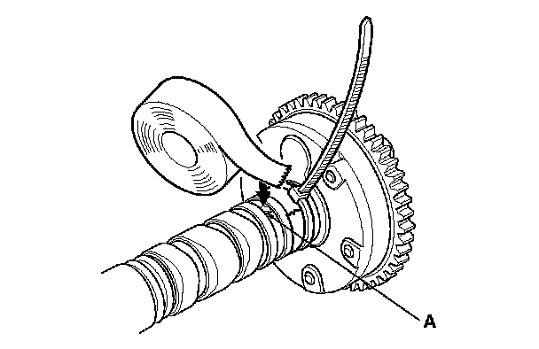 6. Seal the retard holes (A) in the No. 1 camshaft journal with tape and a wire tie.