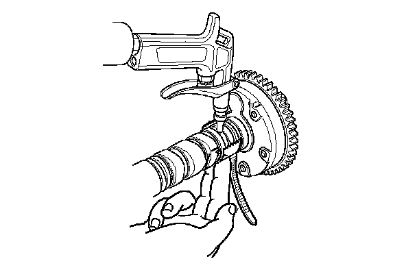 14. Hold the camshaft, and turn the VTC actuator clockwise until you hear it click. Make sure to lock the VTC actuator by turning it.