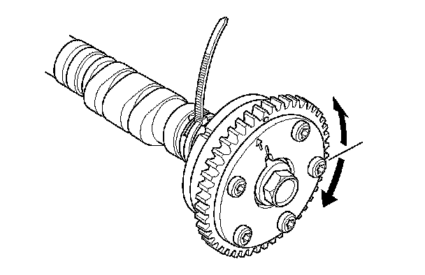 5. Check that the variable valve timing control (VTC) actuator is locked by turning the VTC actuator counterclockwise. If it is not locked, turn the VTC actuator clockwise until it stops, then recheck it. If it is still not locked, replace the VTC actuator.
