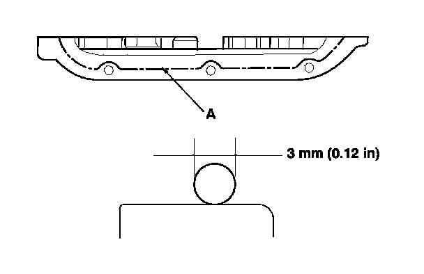 - Apply a 3 mm (0.12 in) diameter bead of liquid gasket along the broken line (A).