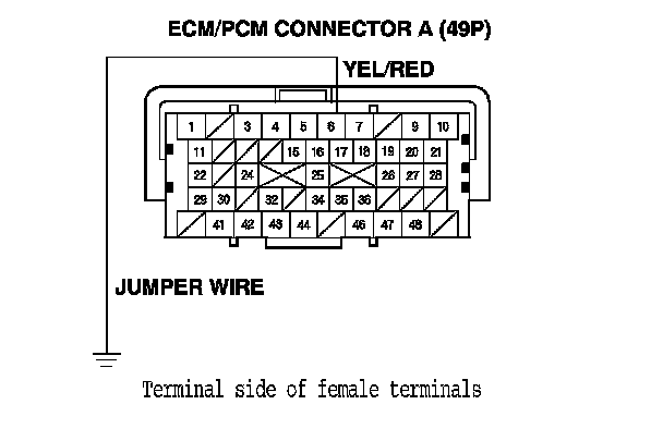 9. Connect the ECM/PCM connector A (49P) terminal No. 6 to body ground with a jumper wire.