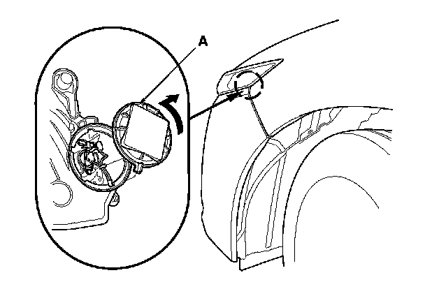 2. Turn the cover (A) 45 ° counterclockwise to remove it from the headlight assembly.