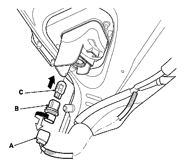 4. Pull the retaining spring (C) away from the bulb then remove the bulb.