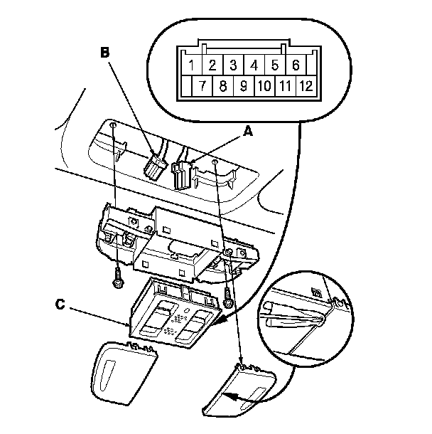 3. Remove the moonroof switch (C) from the map light housing.