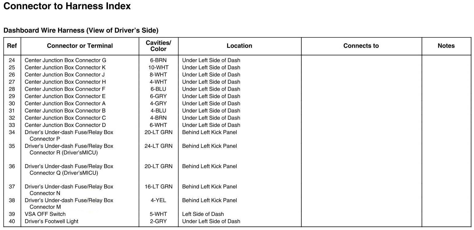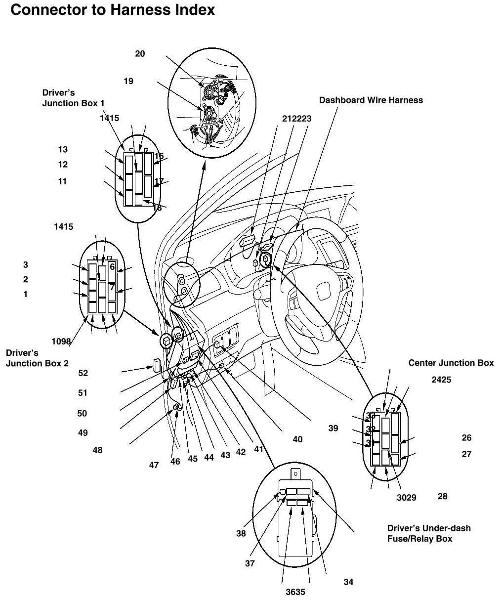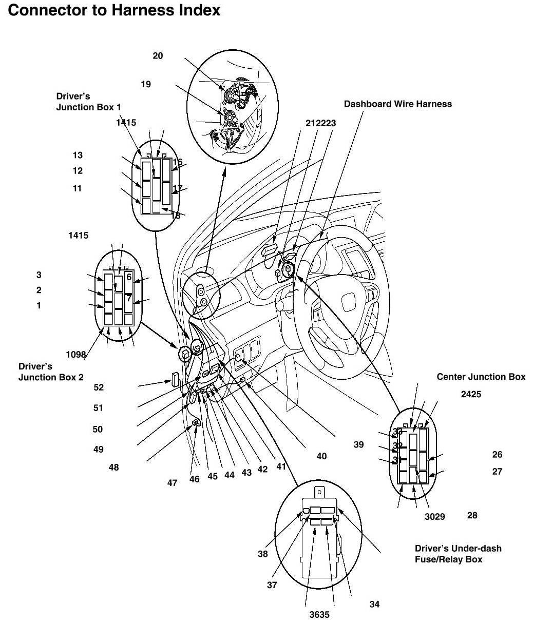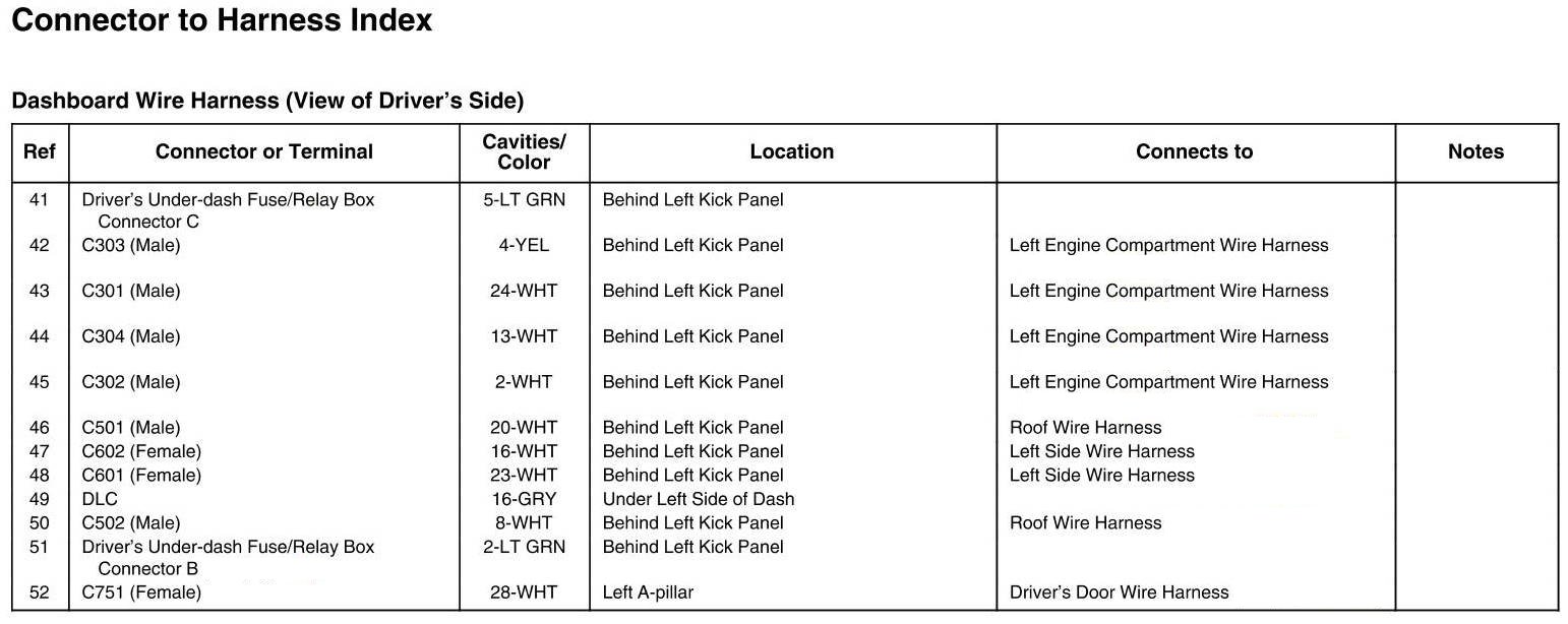 Dashboard Wire Harness (View Of Driver's Side) Connector And Harness Locations