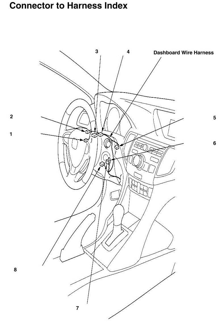 Dashboard Wire Harness (View Of Steering Column Side) Connector And Harness Locations