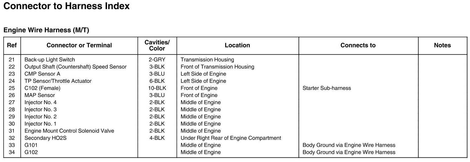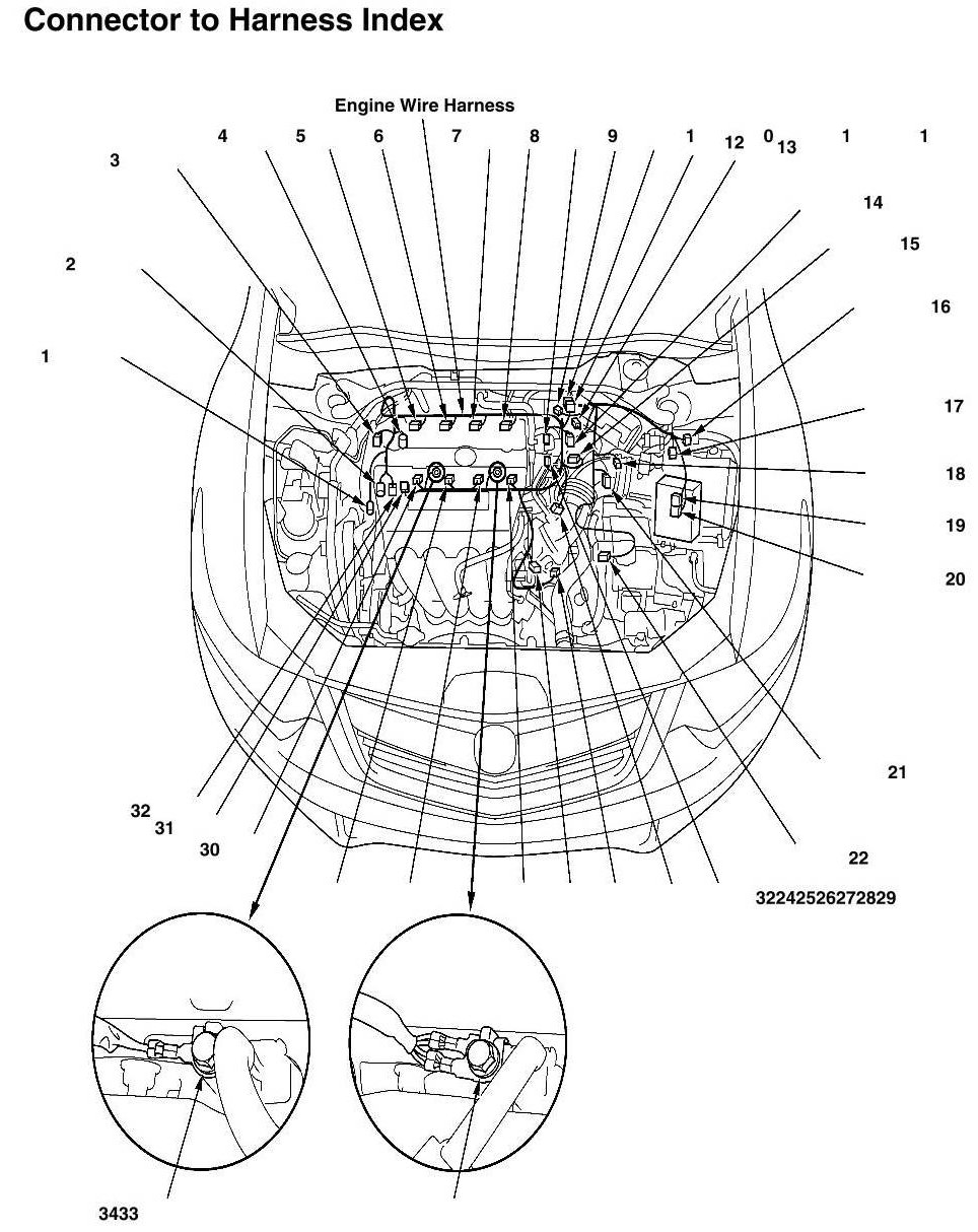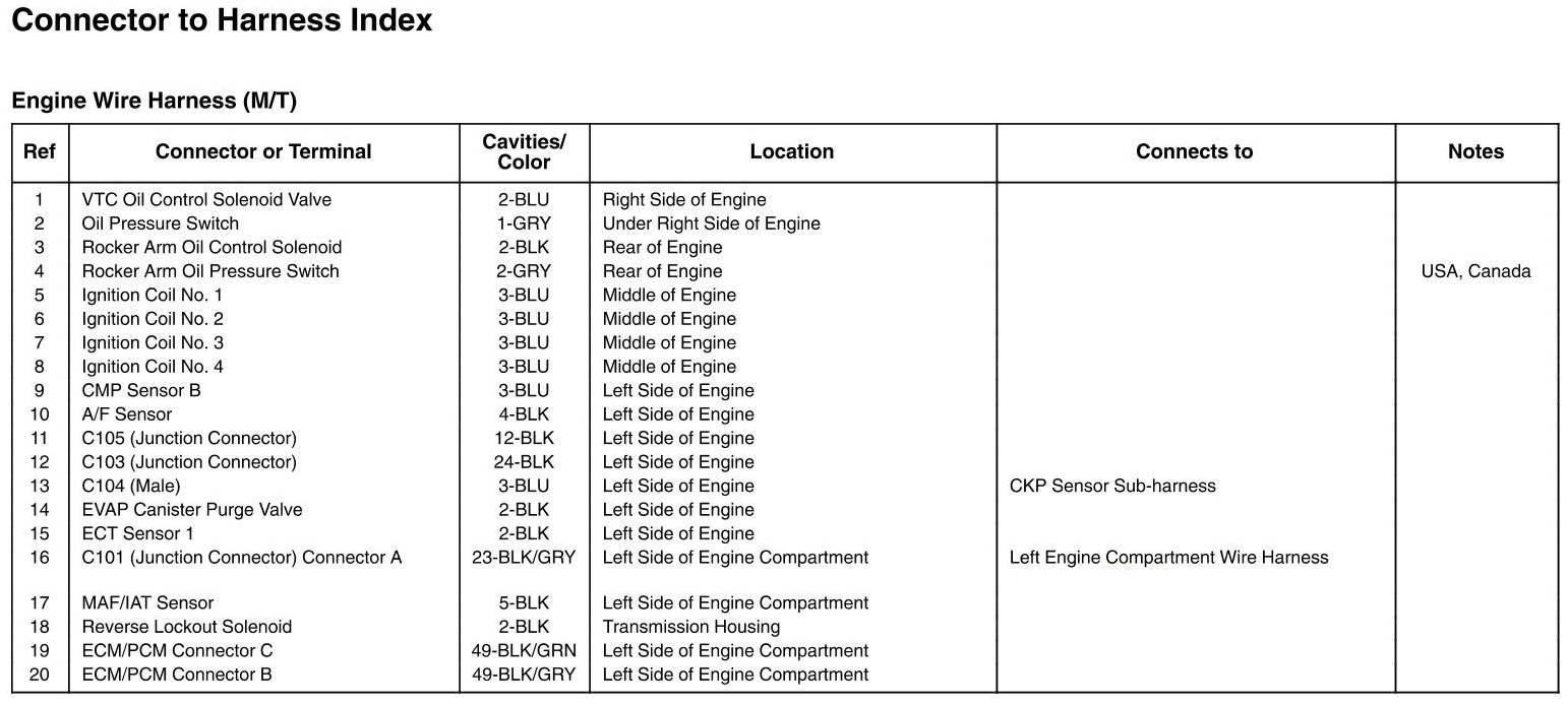 Engine Wire Harness Connector And Harness Locations (M/T)