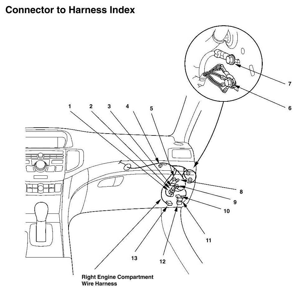 Right Engine Compartment Wire Harness (Dashboard Branch) Connector And Harness Locations