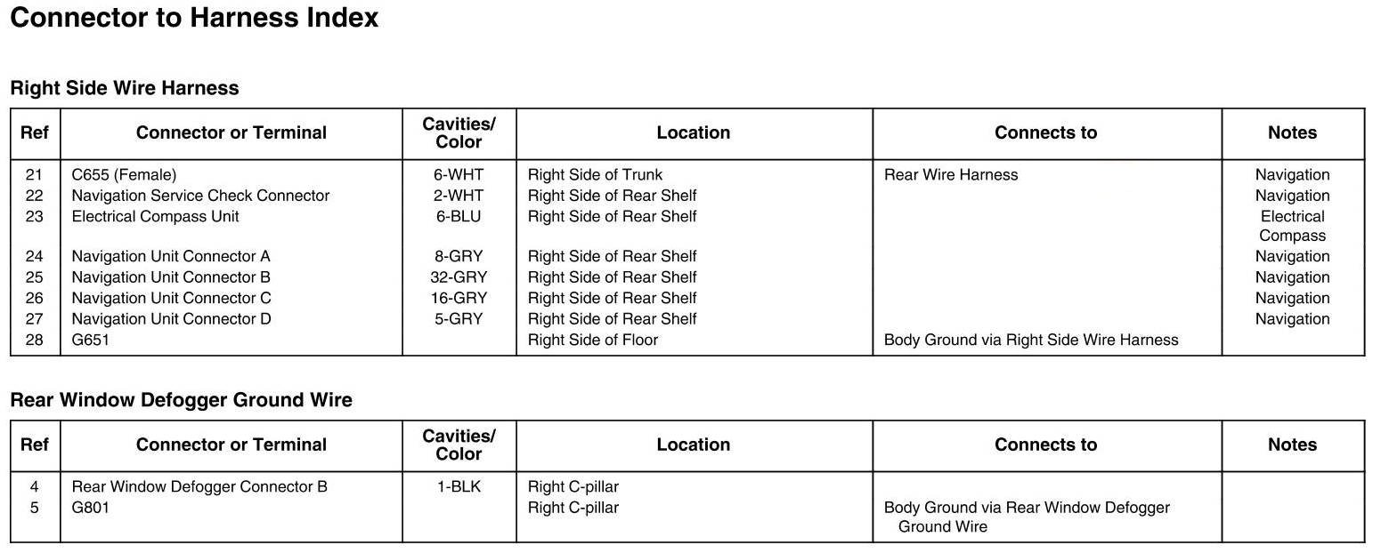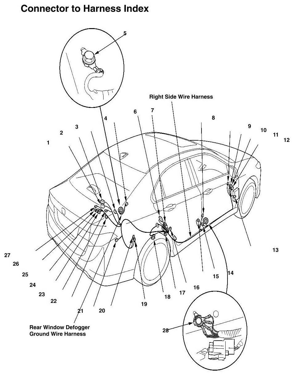 Right Side Wire Harness And Rear Window Defogger Ground Wire Connector And Harness Locations