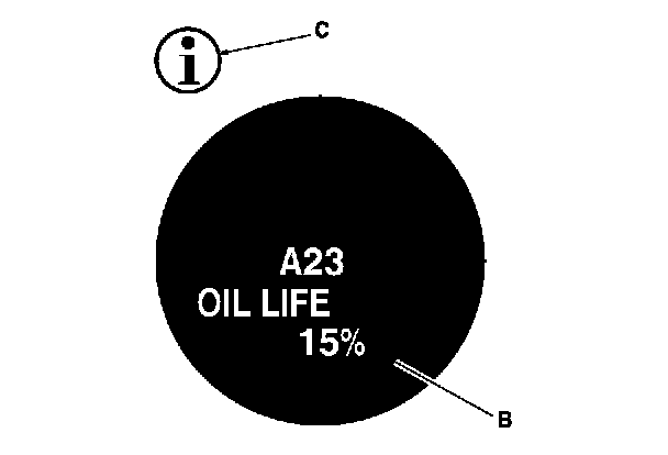 The maintenance system message "SERVICE DUE SOON" (A) also comes on. To cancel the message, press the INFO button. The display continues to show the remaining engine oil life (B) and the message indicator (C) until it is reset.