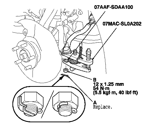3. Remove the brake hose bracket mounting bolt (A).