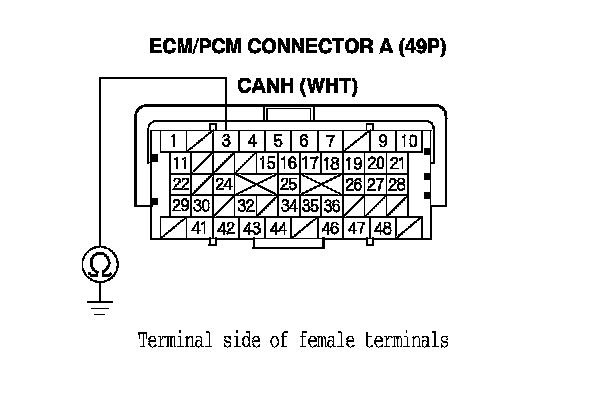 6. Check for continuity between ECM/PCM connector terminals A3 and A4.