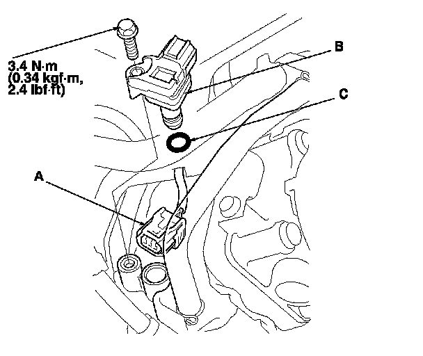 Install the parts in the reverse order of removal with a new O-ring (C).