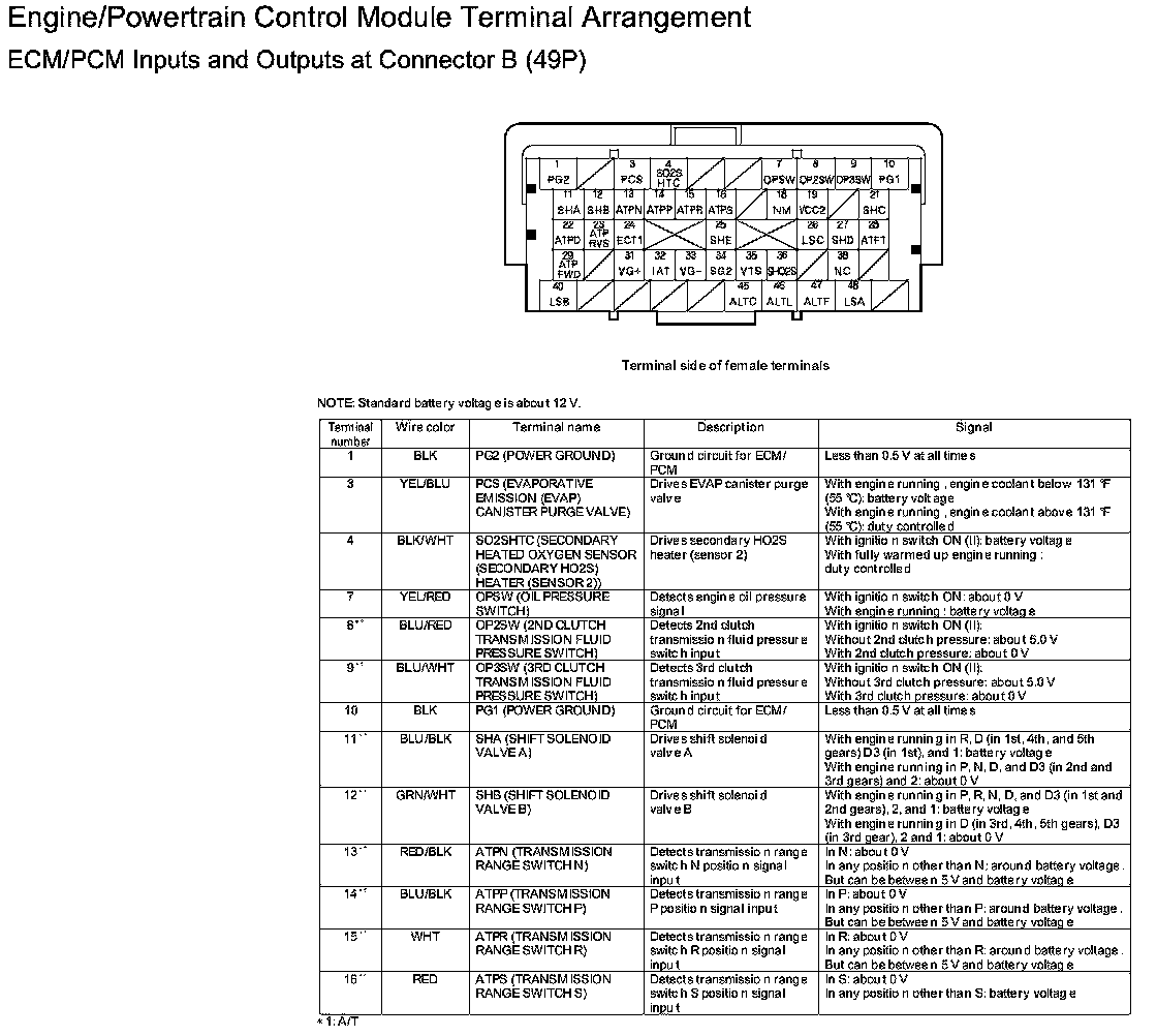 ECM/PCM Inputs And Outputs At Connector B