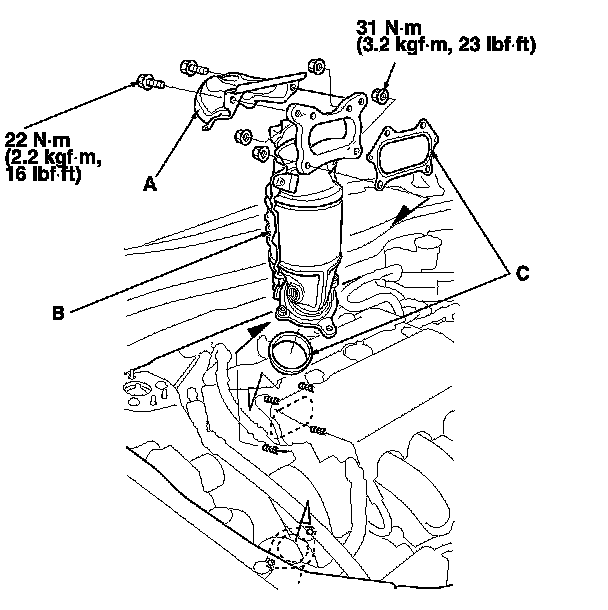 11. Install the parts in the reverse order of removal with new gaskets.