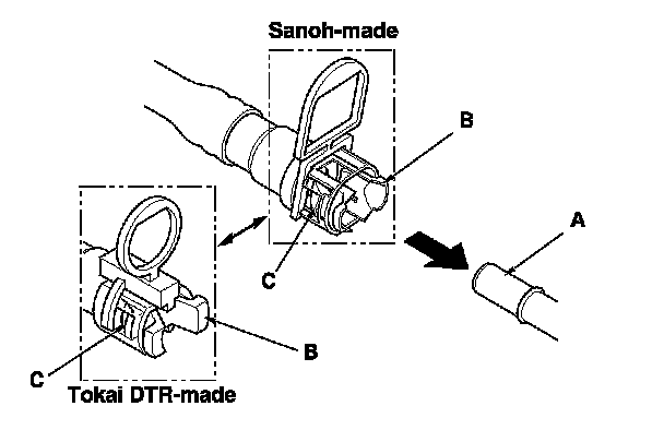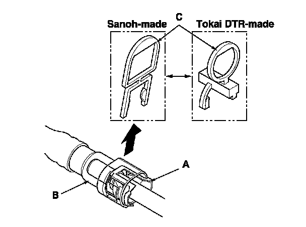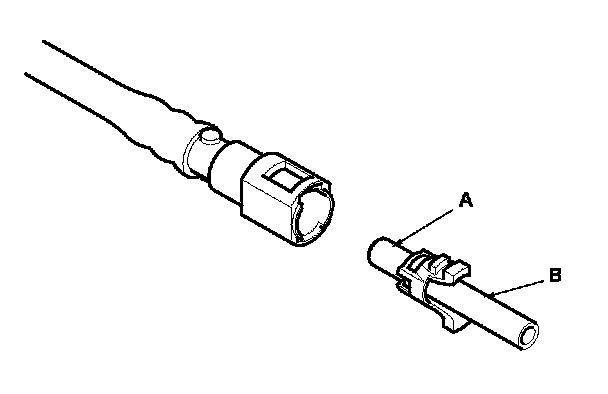 2. Insert a new retainer (A) into the connector (B) if the retainer is damaged, or after: