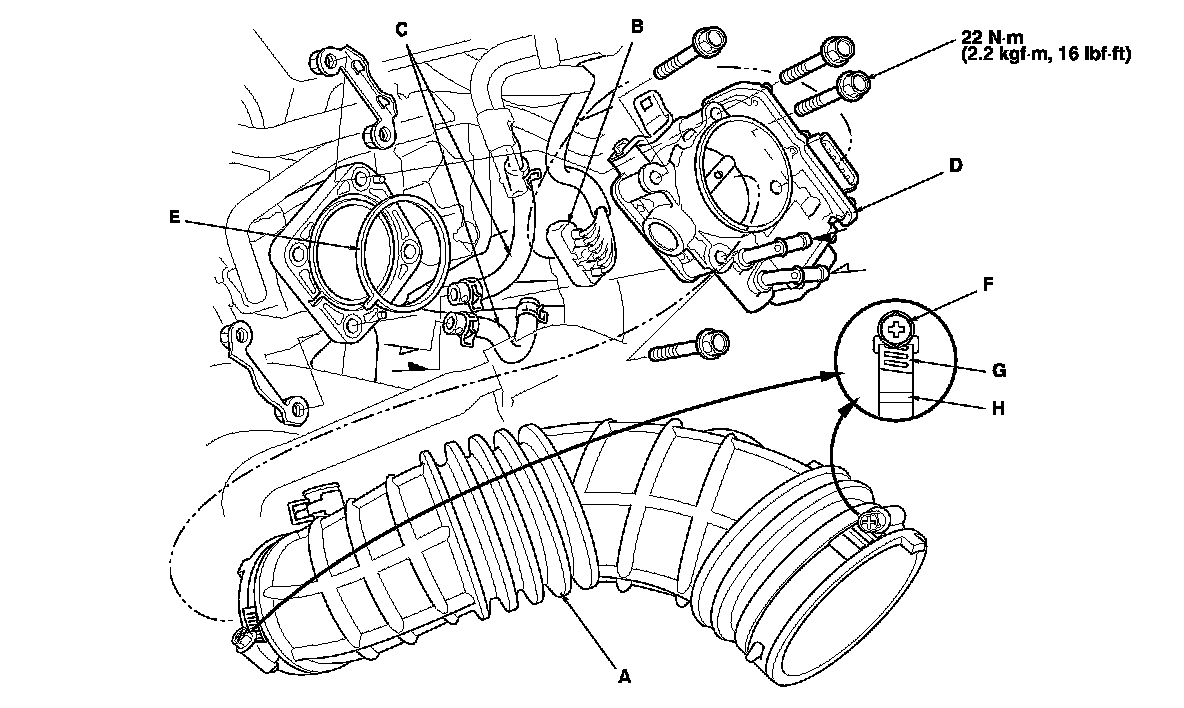 Do not insert your fingers into the installed throttle body when you turn the ignition switch to ON (II) or while the ignition switch is in ON (II). If you do, you will seriously injure your fingers if the throttle valve is activated.