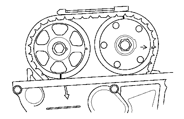 9. Rotate the crankshaft 180 ° clockwise (camshaft pulley turns 90 °).