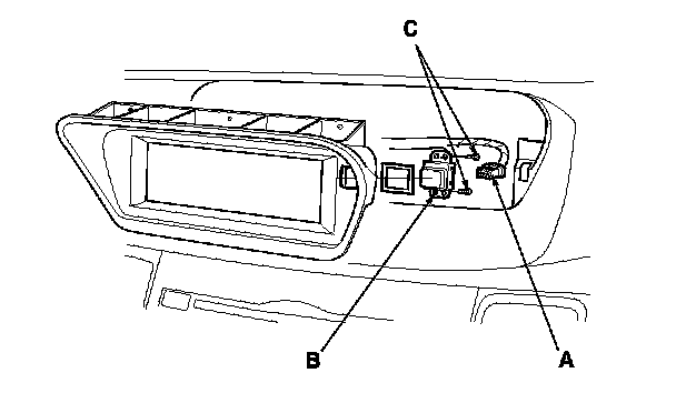 4. Remove the screws (C), then pull out the front passenger's airbag cutoff indicator from the navigation display unit (with navigation system) or the audio-HVAC display unit (without navigation system).