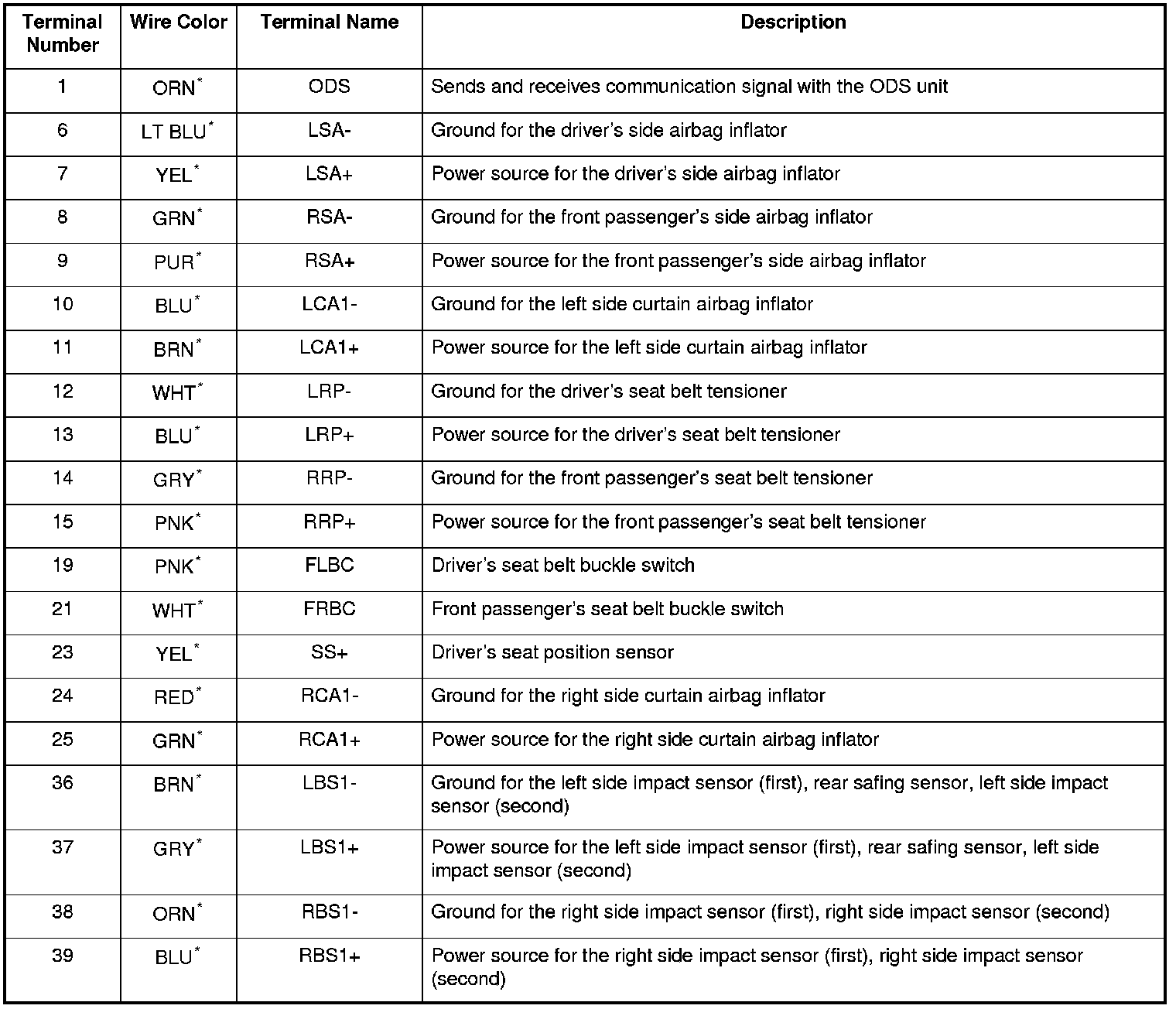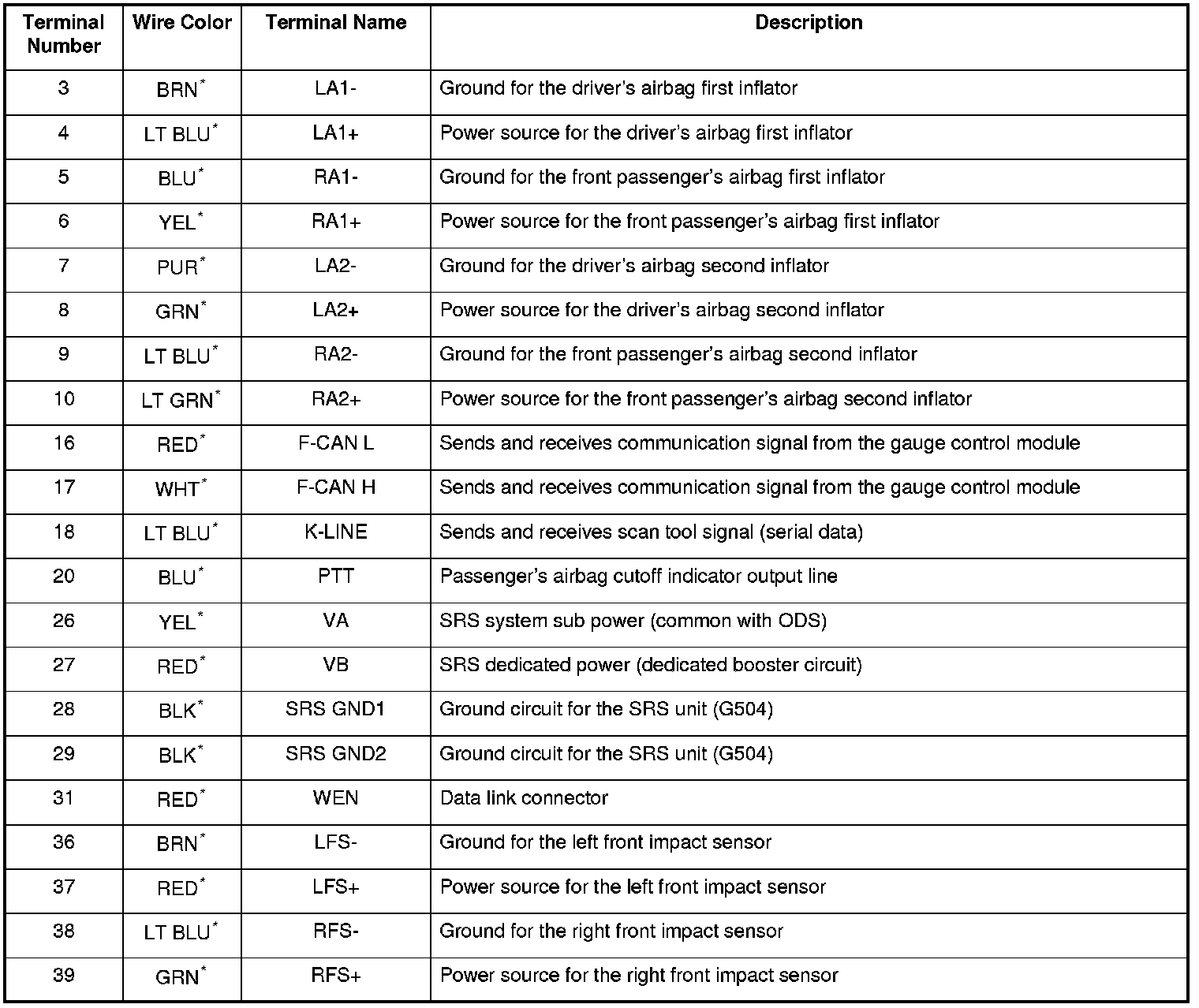*: Wire colors may be substituted in this table.
