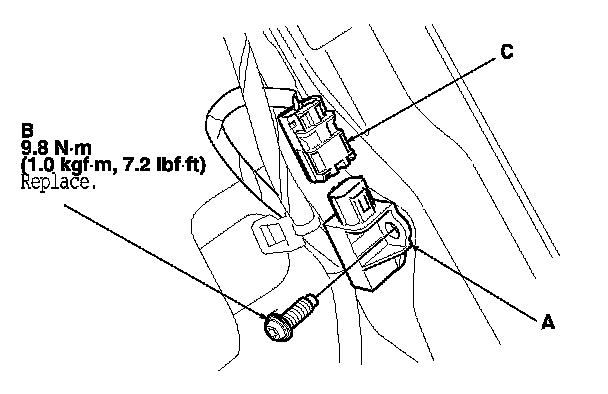 4. Remove the TORX bolt (C) using a TORX T30 bit, then remove the side impact sensor (second).