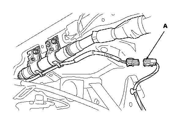 4. Disconnect the driver's and the front passenger's side airbag 2P connectors (A) from the SRS floor wire harness 2P connectors.