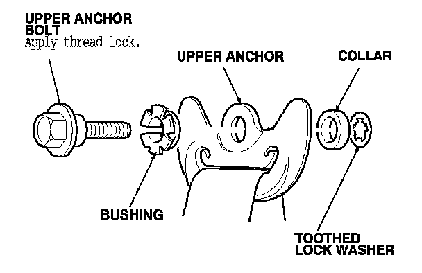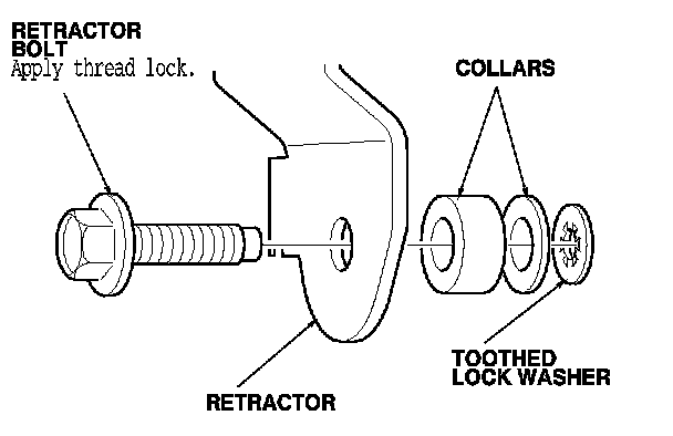 - Apply medium strength liquid thread lock to the upper anchor bolt and the retractor bolt before reinstallation.
