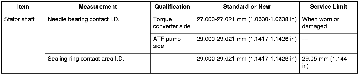 Stator Shaft Specifications (A/T)