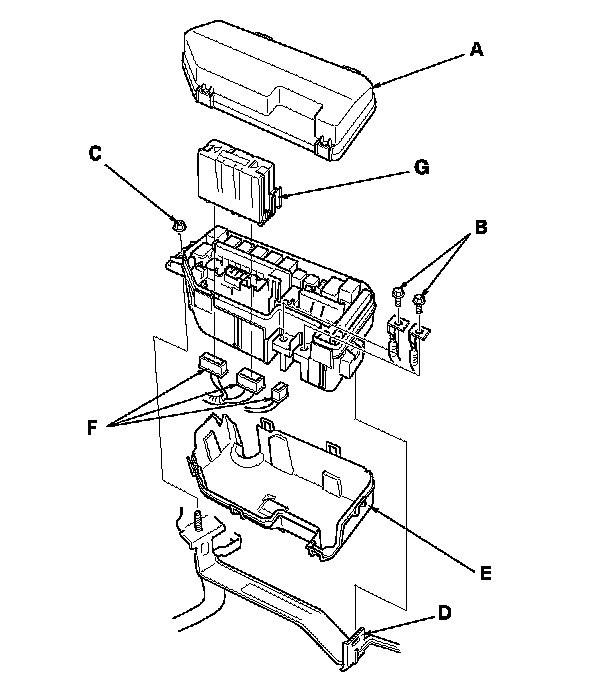 5. Remove the relay circuit board (G) from the under-hood fuse/relay box.