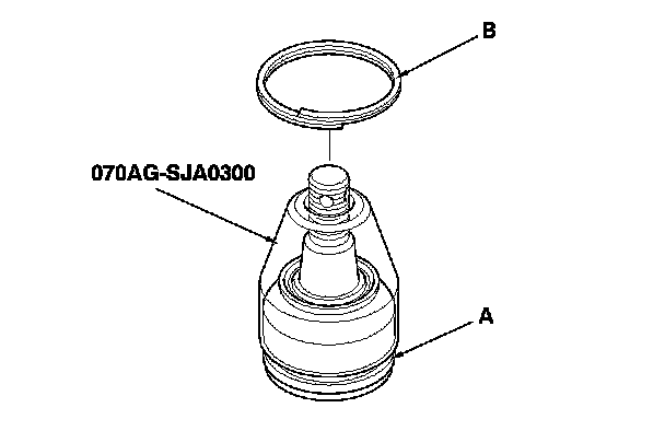 7. The front knuckle ball joint or the rear upper arm ball joint: Adjust the depth by turning the ball joint boot clip guide until its base is just above the groove around (A) the bottom of the boot. Then slide the clip (B) over the tool and into position on the boot.