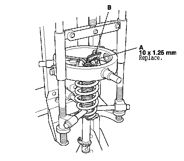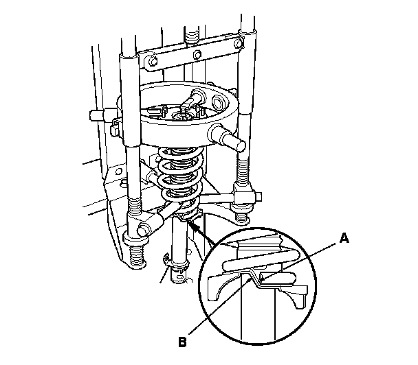 NOTE: When compressing the damper spring, use a commercially available strut spring compressor (Branick MST-580A or Model 7200, or equivalent) according to the manufacturer's instructions.