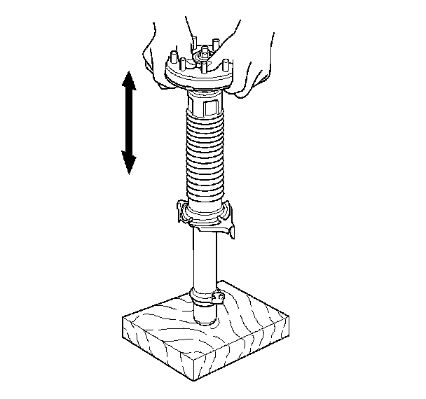 2. Compress the damper assembly by hand, and check for smooth operation through a full stroke, both compression and extension. The damper should extend smoothly and constantly when compression is released. If it does not, the gas is leaking and the damper should be replaced.