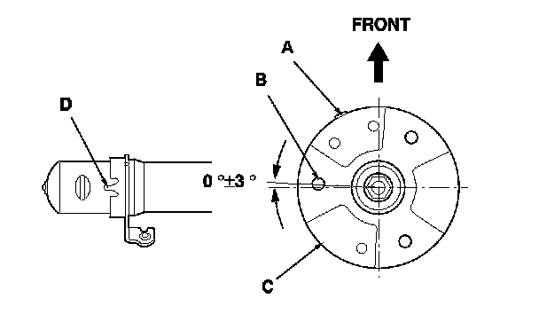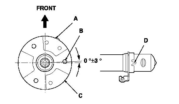 6. Align the angle of the stud (B) on the damper mounting base (C) with the aligning tab (D) on the bottom of the damper unit as shown.