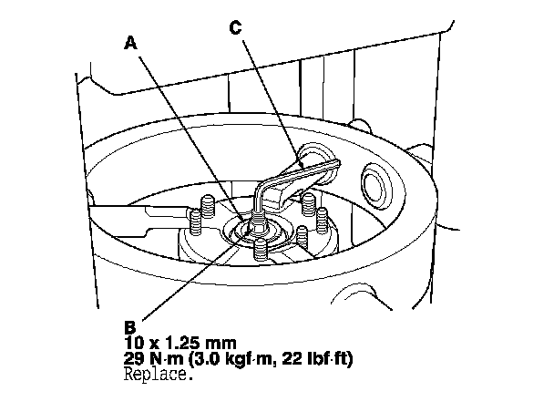8. Hold the damper shaft with a hex wench (C), and tighten the self-locking nut to the specified torque.