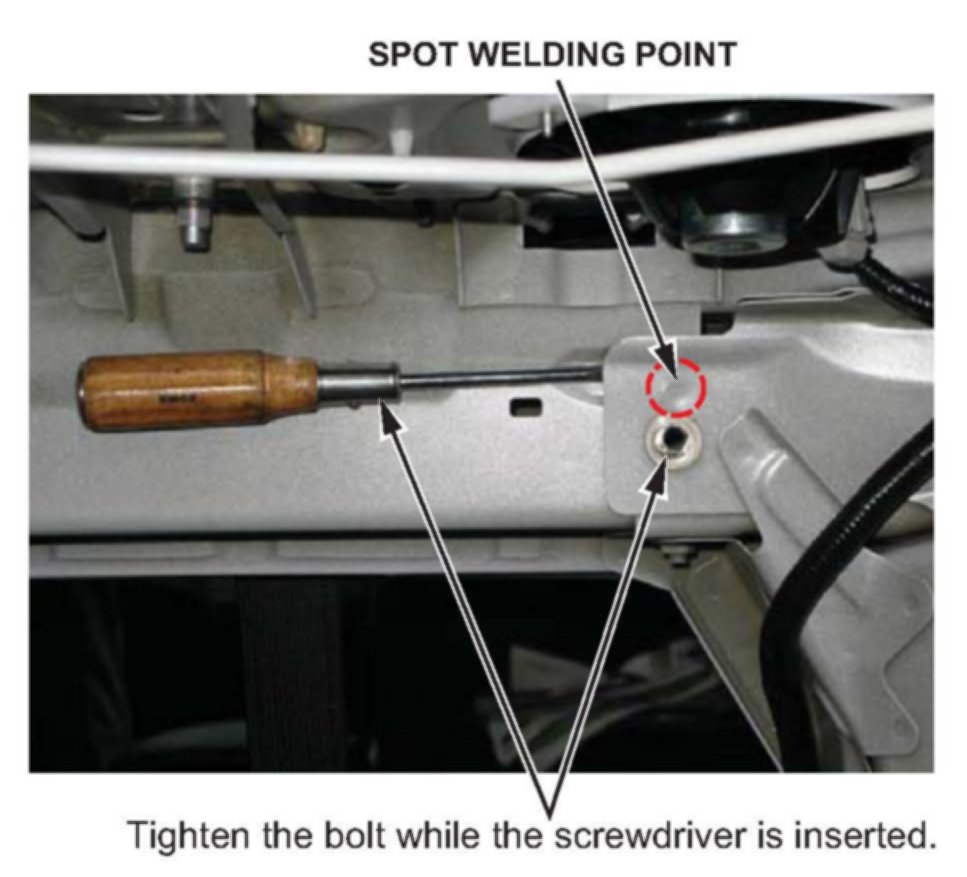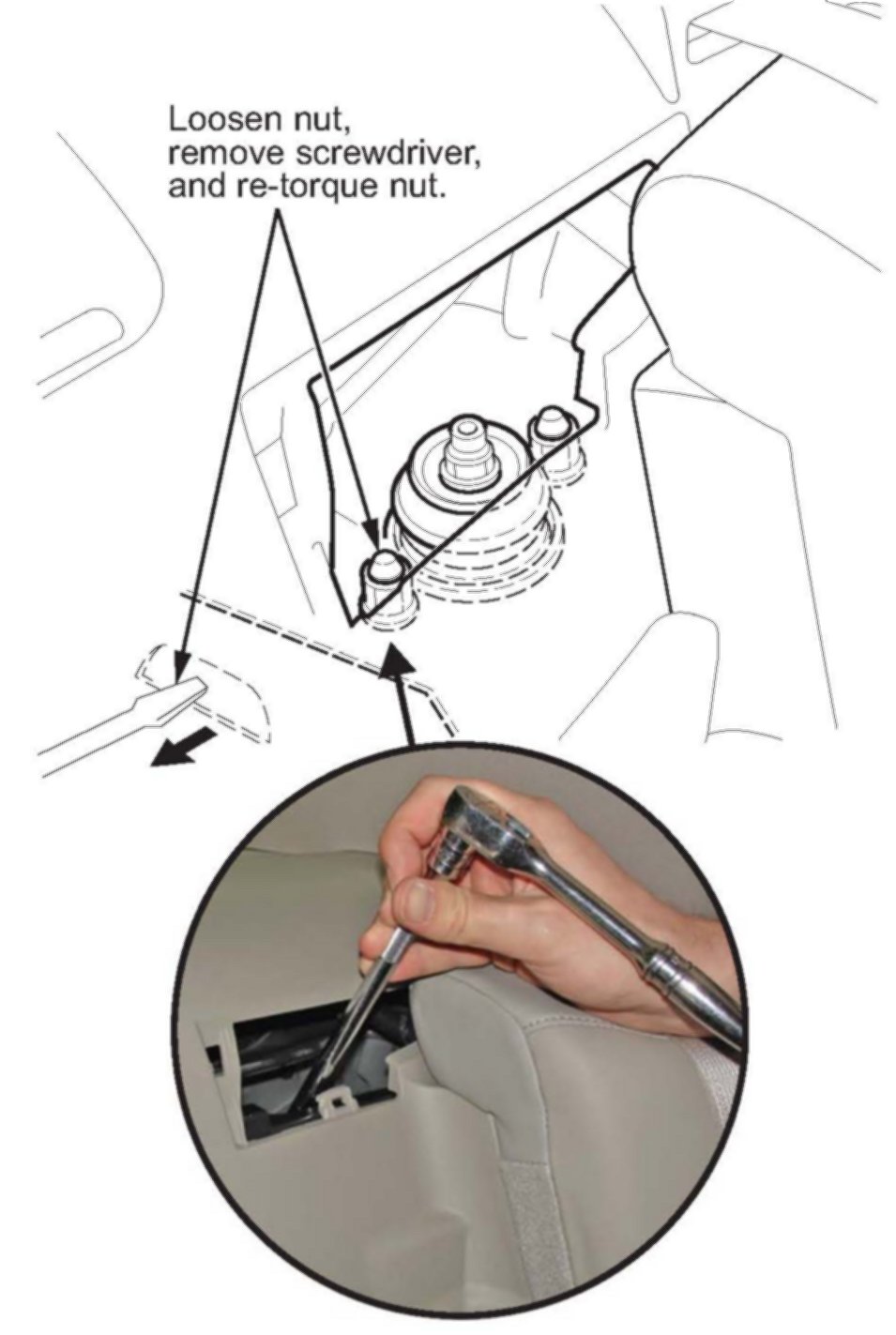 3. Loosen each bolt on the right and left sides as shown, and retighten the bolts to 22 N.m (16 lb-ft).