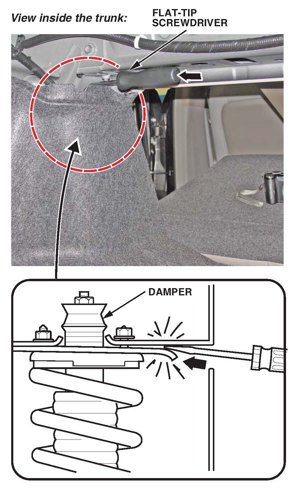 5. Insert a medium flat-tip screwdriver into the spot weld areas where you removed the bolts.
