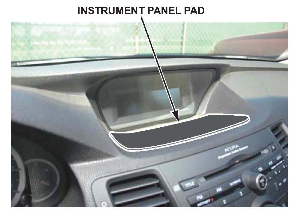 Place the instrument panel pad beneath the audio or navigation display. The instrument panel pad material holds the pad in place.