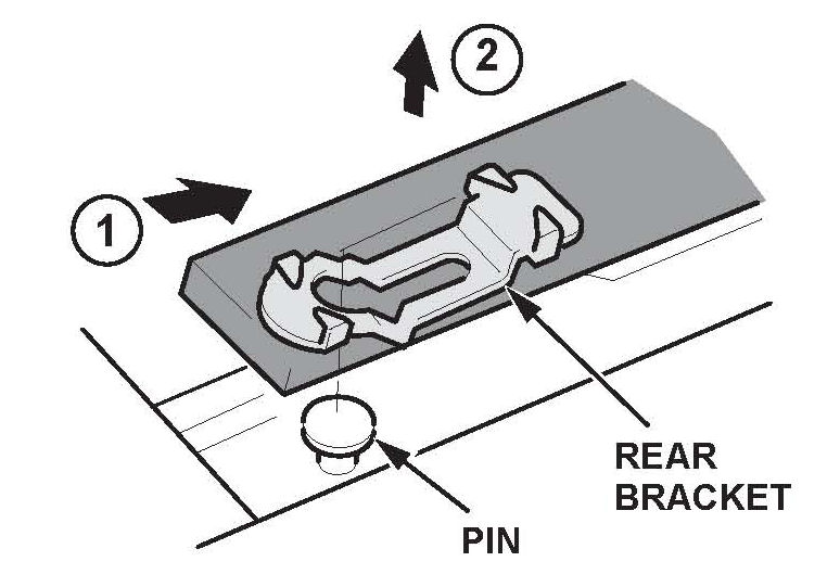 3. At the rear of the molding, pull up and release the rear bracket from the pin.