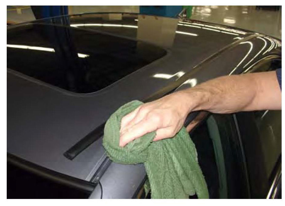 5. Clean the roof molding and the front and rear pins on the body using a shop towel dampened in water.