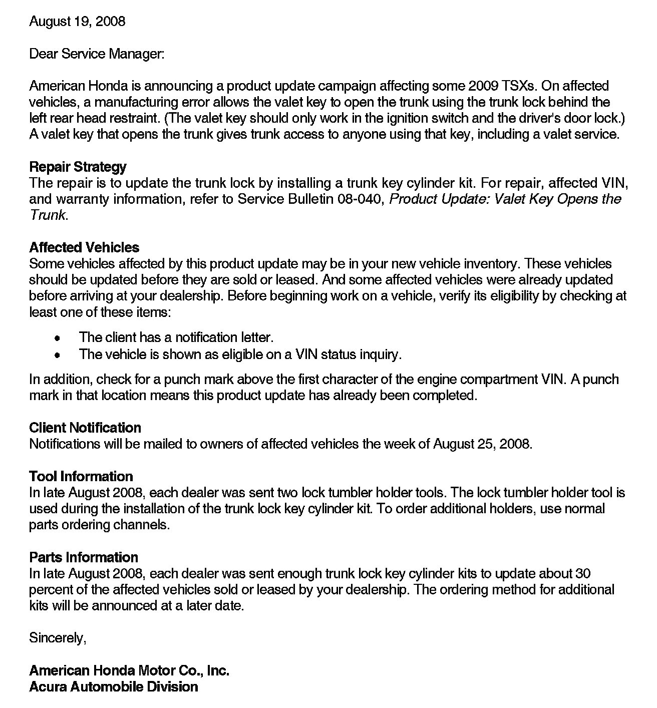 Campaign - Trunk Lock Cylinder Update