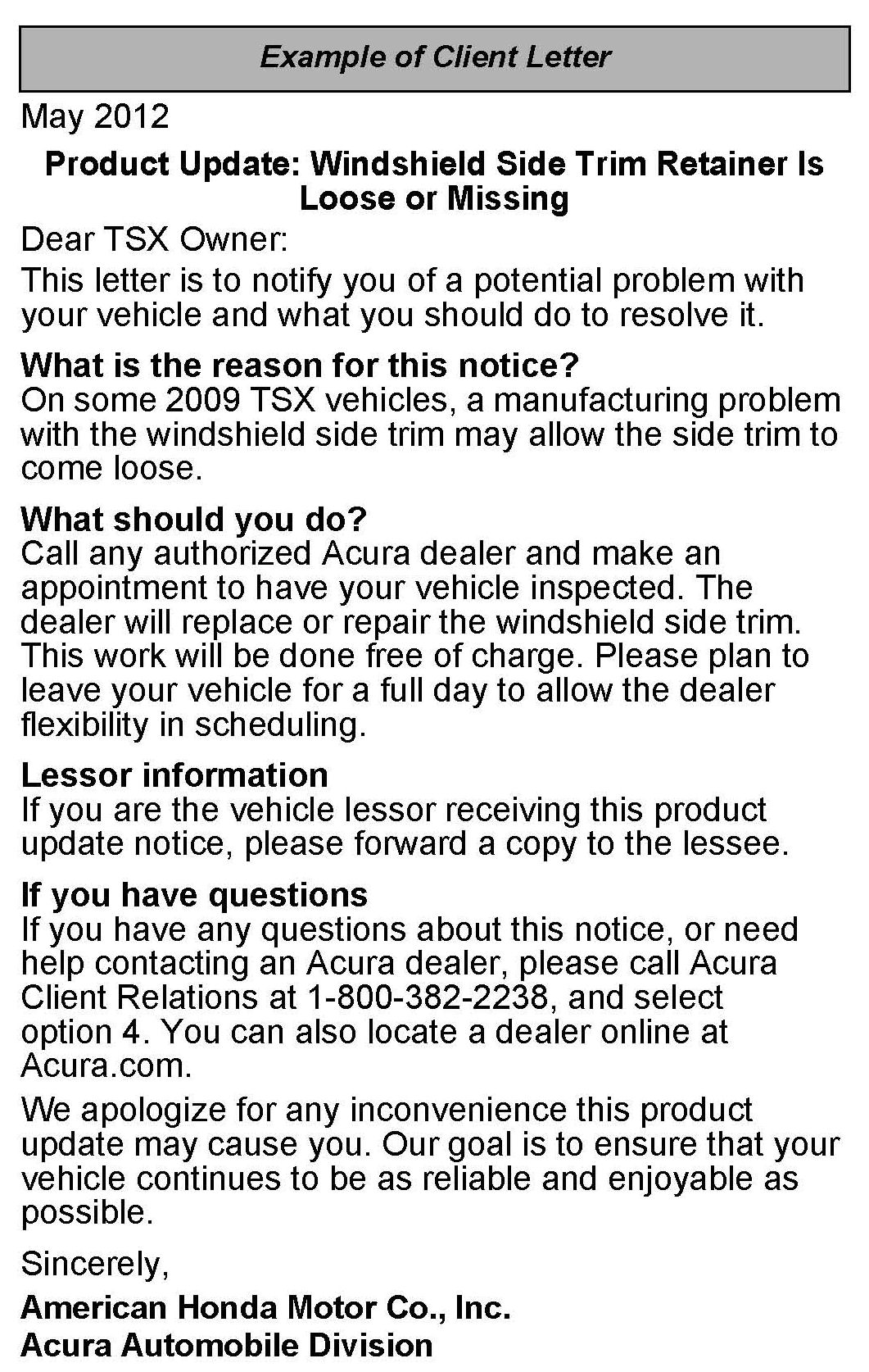 All owners of affected vehicles will be sent a notification of this product update. An example of the client notification is at the end of this service bulletin. Do an iN VIN status inquiry to make sure the vehicle is shown as eligible.