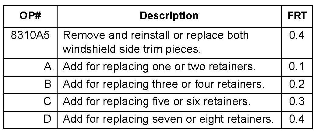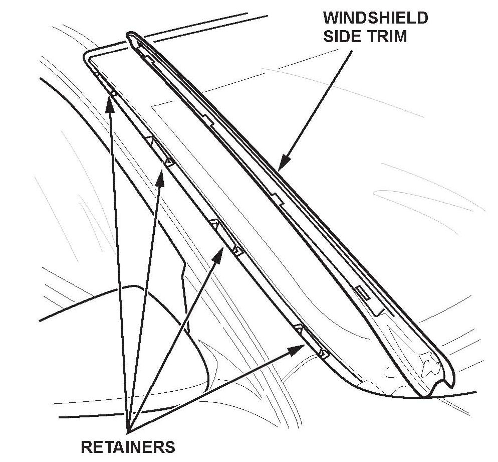 (Includes windshield side trim, three windshield side trim retainers A, and one windshield side trim retainer B)